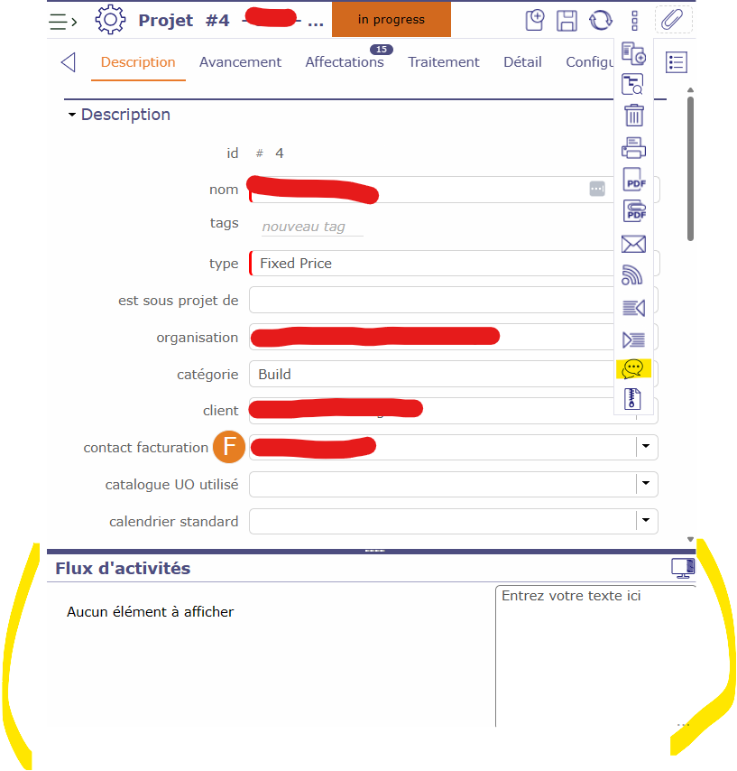 Since last year, the little frame showing the histrory of activities related to project, task whatever can'be closed when clicking on the button shown in the screen capture.