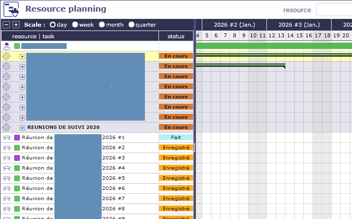 In the "Resource Planning" view, periodic meetings don't collapse when you click on the minus "-" button of the project they belong to, or on the global minus button.