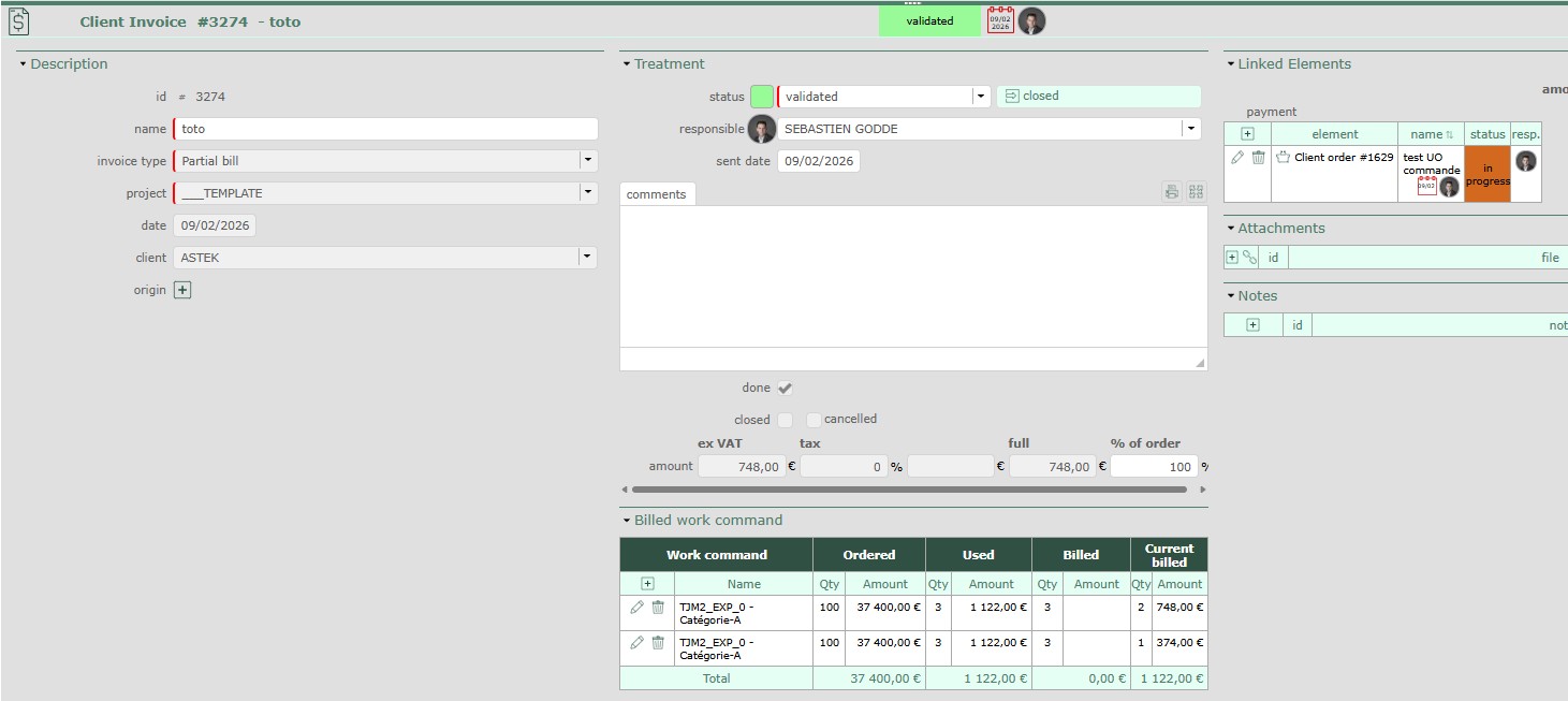 Problem: the sum of the invoiced amount in the "Billed work order" table is zero. ==> Why?