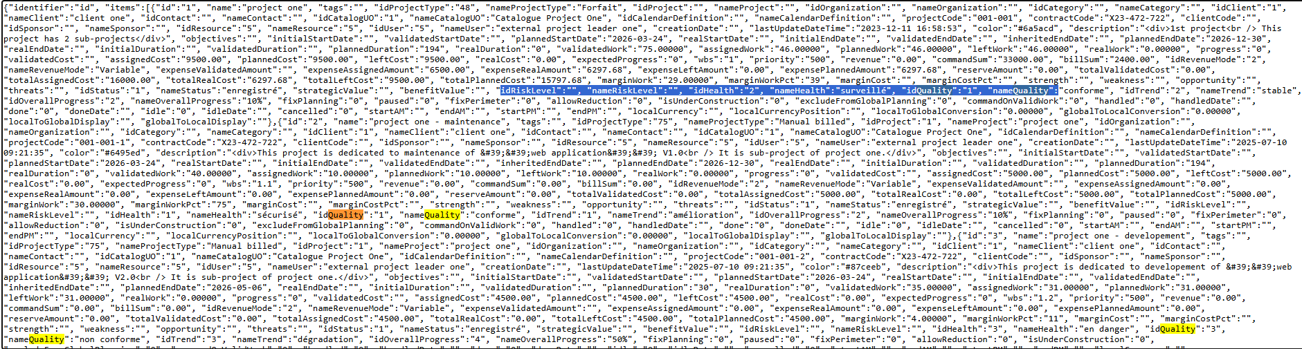 API; however, when we compare the data schema, it seems that many fields are missing compared to the project import file.For example: Sponsor field, risk level, status, quality level, trend, overall progress. Is this intentional? It would be greatly appreciated to have them all.Thank you,