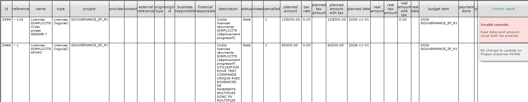 The same error again, ProjeQtOr ask for planned Date and planned amount for expense, even if there are in file or ask for real Amount and Real Date.