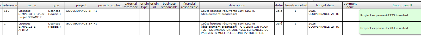 export 2 expenses from ProjeQtOr with EVERY fields (see attachment