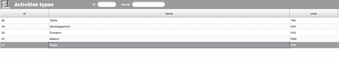 ProjeQtOr free project management software - Activities type : are the default code used to automation or calculation - ProjeQtOr